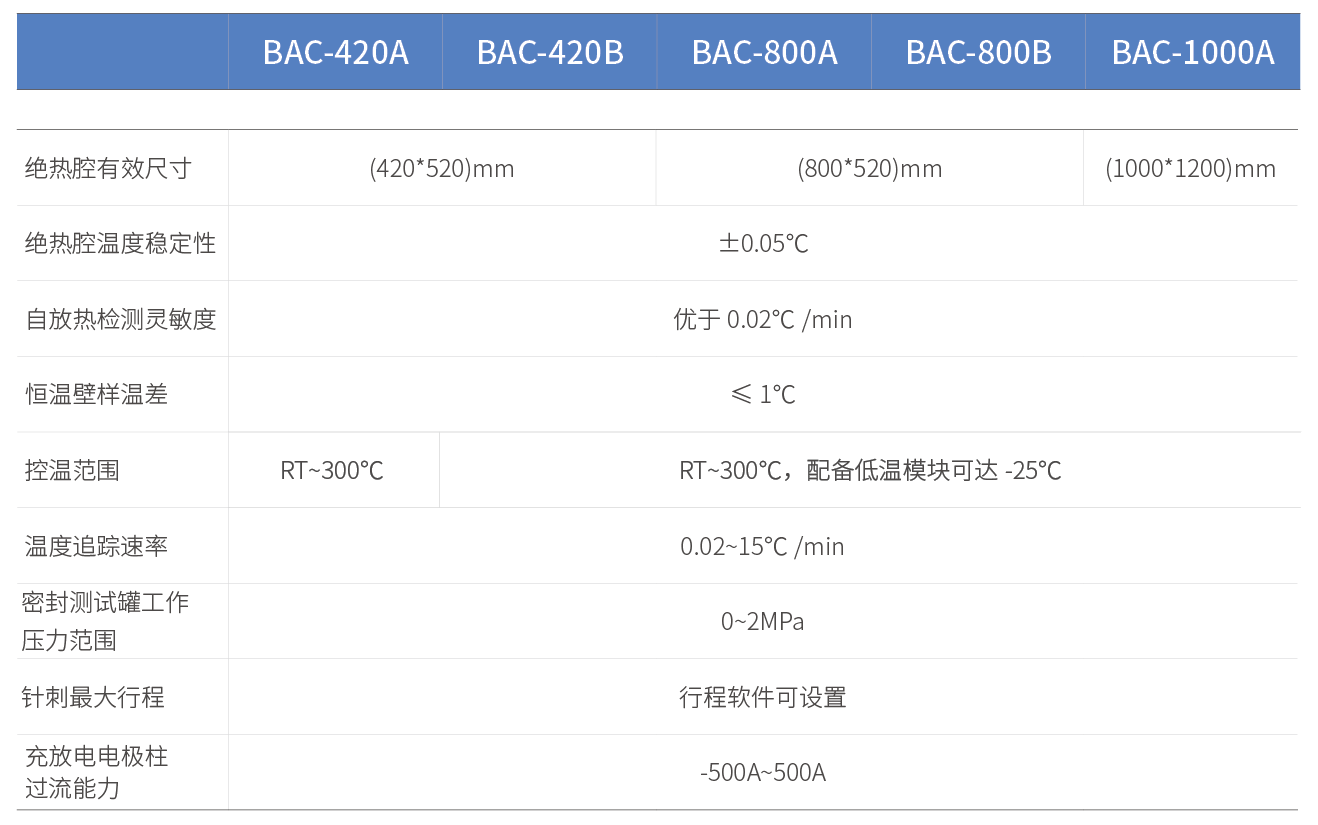 儀器性能方面,BAC系列可針對(duì)長(zhǎng)邊≤1500mm范圍內(nèi)的電芯開(kāi)展安全、精準(zhǔn)、可靠的絕熱熱失控測(cè)試。與目前國(guó)內(nèi)外廠家的標(biāo)準(zhǔn)產(chǎn)品相比,BAC系列大容量腔體的抗爆性和產(chǎn)氣測(cè)試能力顯著提升,能夠承受大型電芯的熱失控溫壓沖擊。