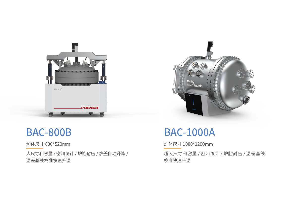 隨著鋰電池行業(yè)的發(fā)展,電芯朝著大尺寸、大容量和高比能量的趨勢(shì)發(fā)展,對(duì)電池?zé)岚踩珳y(cè)試設(shè)備提出了更高的要求。傳統(tǒng)電池ARC因腔體體積小、抗爆性/耐壓性不足、不兼容熱失控產(chǎn)熱和產(chǎn)氣過(guò)程同步分析等缺點(diǎn),已無(wú)法滿足大尺寸刀片電池、大容量高鎳三元電池和鋰金屬全固態(tài)電池等未來(lái)主流電池的測(cè)試需求。仰儀科技從市場(chǎng)需求出發(fā),針對(duì)現(xiàn)有電池絕熱儀器的應(yīng)用限制,2023年推出了BAC系列全尺寸大型電池絕熱量熱儀。