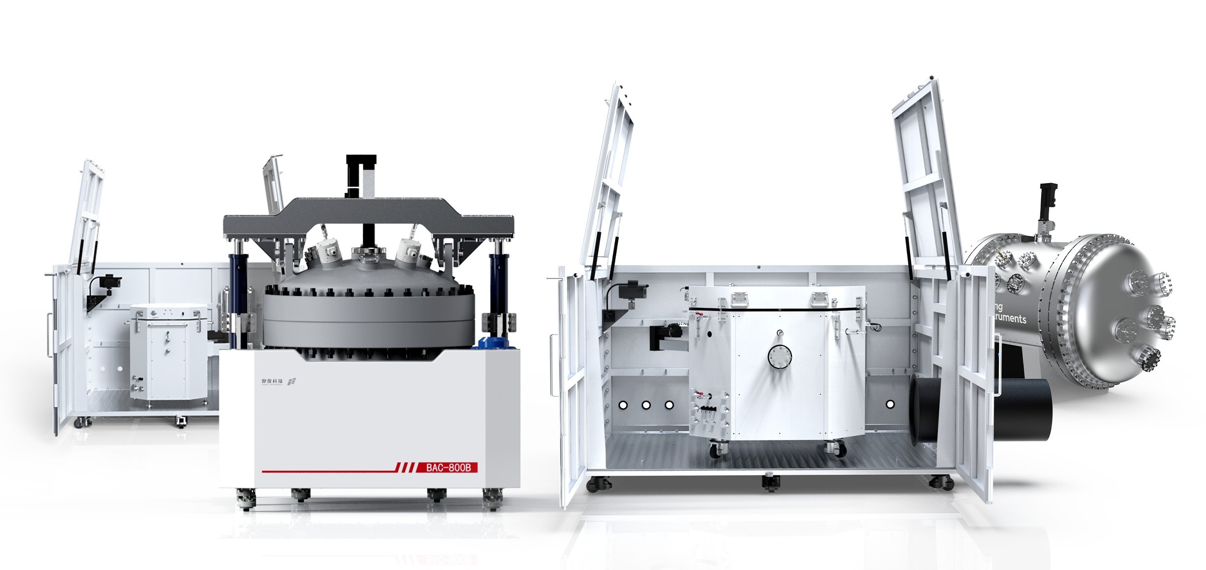 產(chǎn)品型號(hào)包含BAC-800B和BAC-1000A,密閉型爐腔完全按照GB/150壓力容器設(shè)計(jì)規(guī)范進(jìn)行開發(fā),可持續(xù)承壓2MPa,同時(shí)具有優(yōu)異的密封性,創(chuàng)造性地將定容燃燒彈和ARC功能合二為一,無(wú)需配置密封罐即可同步完成大尺寸、大容量電芯熱失控特征溫度及產(chǎn)氣測(cè)試,進(jìn)一步提高試驗(yàn)的效率和可靠性。另外,通過(guò)腔體可調(diào)式泄壓設(shè)計(jì),解決了國(guó)外某廠商絕熱儀器存在的腔體和電池表面溫差大,絕熱性能不佳的問(wèn)題。