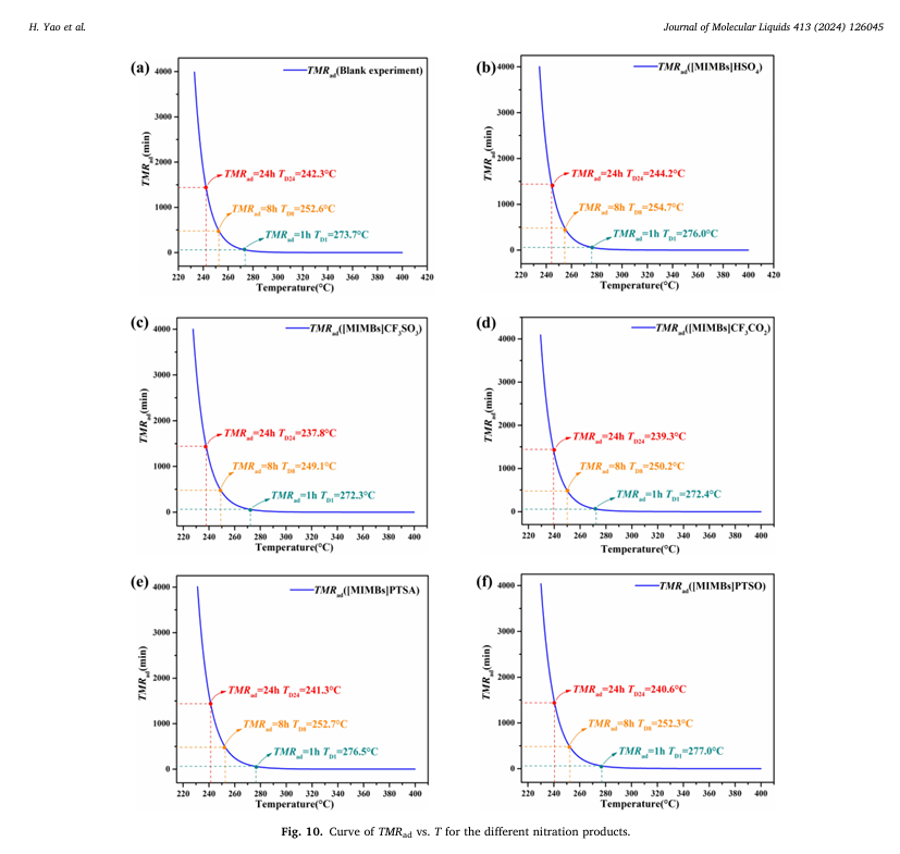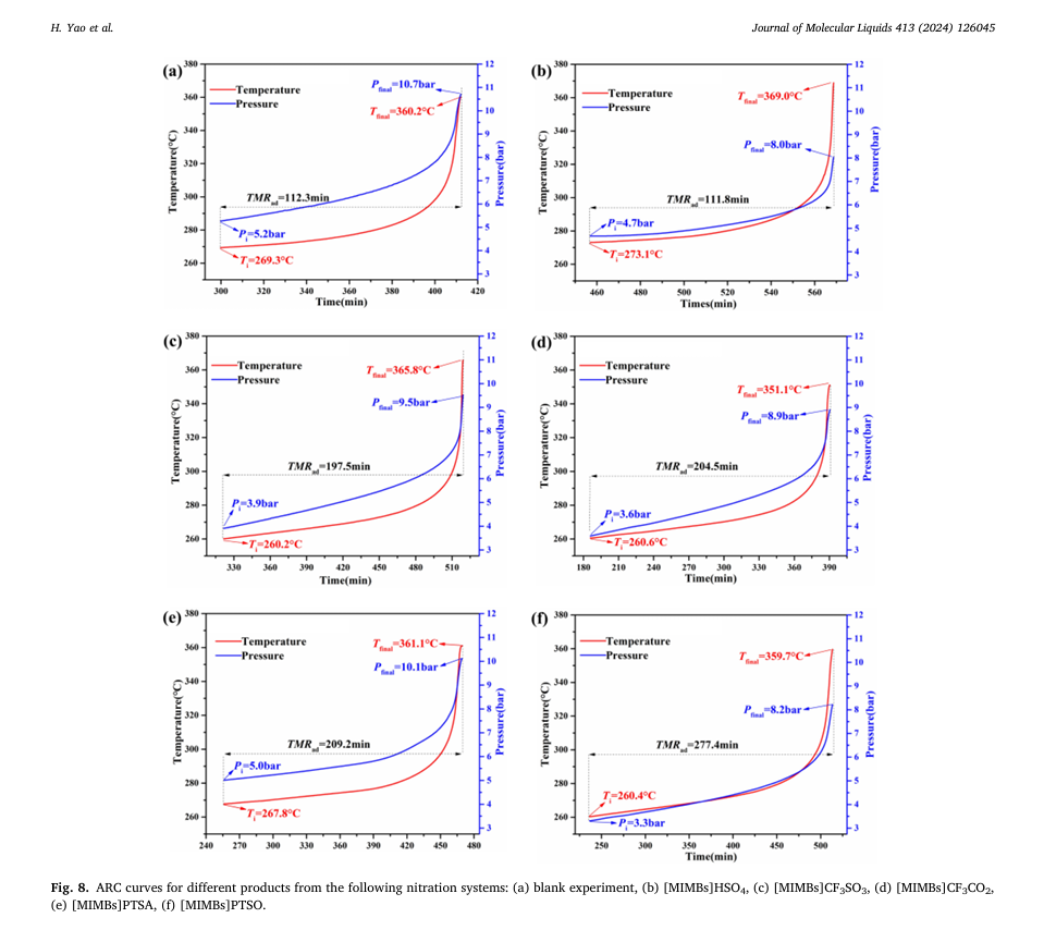 本研究項目深入探討了五種不同類型的磺酸基咪唑類離子液體(SFILs)在催化間二甲苯硝化反應(yīng)中的選擇性和熱危險性。其中,仰儀科技的絕熱加速量熱儀TAC-500A被用于硝化產(chǎn)物的絕熱熱失控測試和熱動力學(xué)分析,為開發(fā)高效且安全的硝化工藝提供了關(guān)鍵的數(shù)據(jù)支撐。