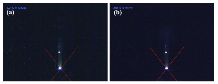 實驗錄像1 (a) 火焰不傳播XTS =6.526%; (b) 火焰?zhèn)鞑?/span>XTS =7.077%