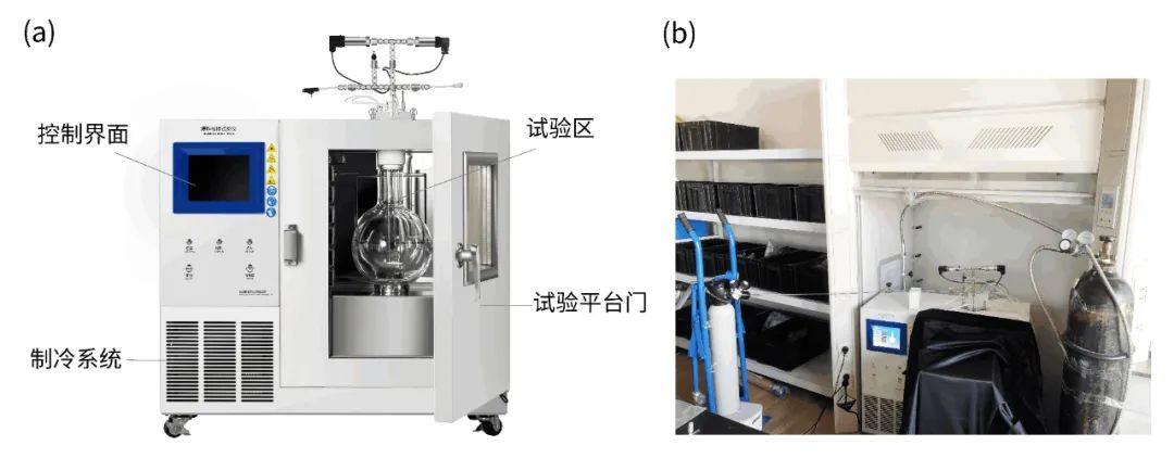 圖2 (a) HWP21-30S爆炸極限試驗儀; (b) 實驗裝置現(xiàn)場圖