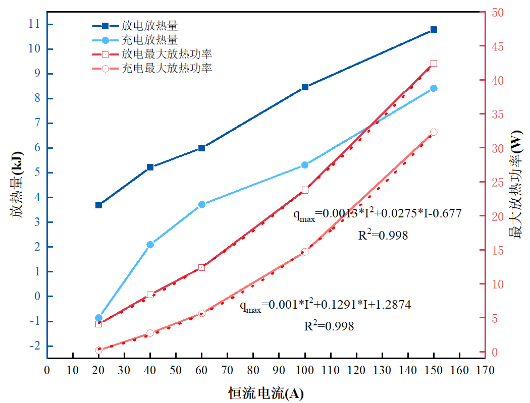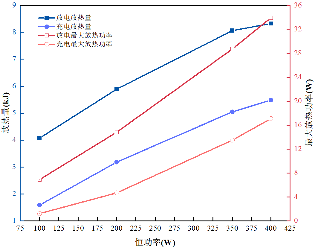 本文利用仰儀科技等溫量熱儀(BIC-400A)測定了鋰離子電容器在恒流放電、恒流恒壓充電以及恒功率充放電工況下的產(chǎn)熱特性,并基于產(chǎn)熱功率曲線計(jì)算得到Q和qmax等數(shù)據(jù)。相關(guān)結(jié)果有助于驗(yàn)證或改進(jìn)針對LIC的熱管理策略,確保LIC的性能發(fā)揮和使用安全。