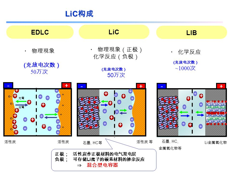 圖1 LIC和LIB、EDLC的原理和區(qū)別
