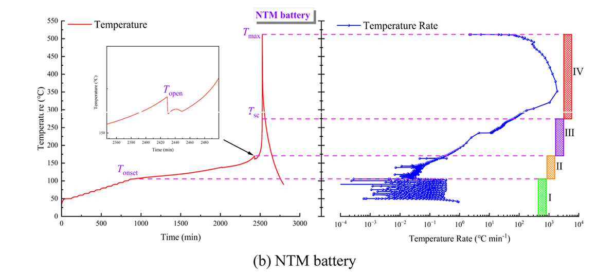 本研究使用仰儀科技小型電池絕熱量熱儀BAC-90A,對三種18650電池(以NaxTMO2[NTM]為陰極的鈉離子電池和兩種以LiFePO4[LFP]、LiNi0.5Co0.2Mn0.3O2[NCM]為陰極的鋰離子電池)的熱失控特性及危險(xiǎn)性進(jìn)行了研究對比分析。