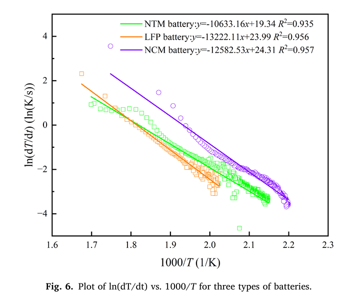 三種電池的熱失控評估模型表明,熱危險(xiǎn)性順序?yàn)镹CM電池>NTM電池>LFP電池。