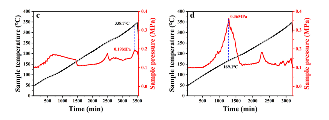 本研究將含有約1.0-1.2 g樣品的不銹鋼彈體嵌入絕熱加速量熱儀TAC-500A設(shè)備中。在50℃~350°C范圍內(nèi)采用經(jīng)典的加熱-等待-搜索(H-W-S)模式,該模式每個(gè)目標(biāo)溫度之間的加熱間隔為5°C,每個(gè)目標(biāo)溫度保持30分鐘,檢測靈敏度高,能自動(dòng)檢測并精準(zhǔn)獲取到該反應(yīng)下的溫度和壓力實(shí)時(shí)變化數(shù)據(jù),從而計(jì)算出該反應(yīng)的關(guān)鍵熱安全參數(shù),為其反應(yīng)危害評(píng)估提供可靠的數(shù)據(jù)支持。