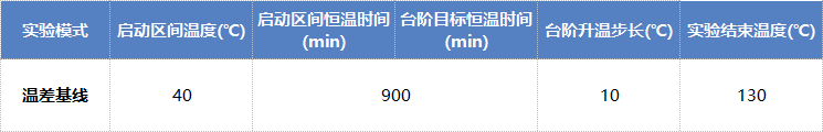 Step4:在操作軟件上切換至“實(shí)驗(yàn)參數(shù)”界面,選擇“溫差基線”模式,如表1所示設(shè)置實(shí)驗(yàn)參數(shù);