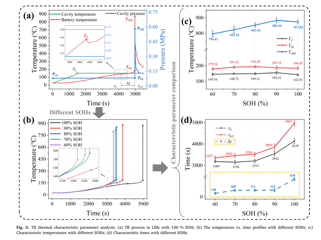 本研究利用BAC-90A小型電池絕熱量熱儀,配套密封罐裝置,采用150℃恒溫模式,對(duì)不同健康狀態(tài)(SOH:100%~60%)的鋰電池開展熱失控測(cè)試與產(chǎn)氣壓力監(jiān)測(cè)。通過聯(lián)用氣相色譜儀分析不同SOH電池?zé)崾Э貧怏w成分及含量變化,揭示了熱失控時(shí)序與電池?zé)岱€(wěn)定性的關(guān)聯(lián)機(jī)制。