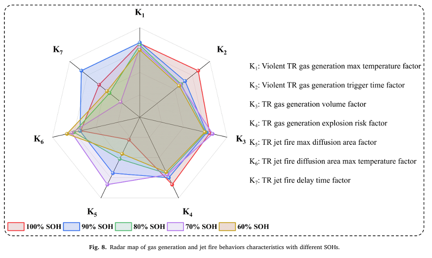 本研究還通過開展不同SOH電池的熱失控噴射火行為實(shí)驗(yàn),結(jié)合熱失控產(chǎn)氣參數(shù)進(jìn)行應(yīng)用場(chǎng)景下的綜合特性分析,為儲(chǔ)能系統(tǒng)及電動(dòng)汽車的電池管理系統(tǒng)(BMS)安全設(shè)計(jì)提供了關(guān)鍵技術(shù)指導(dǎo)。