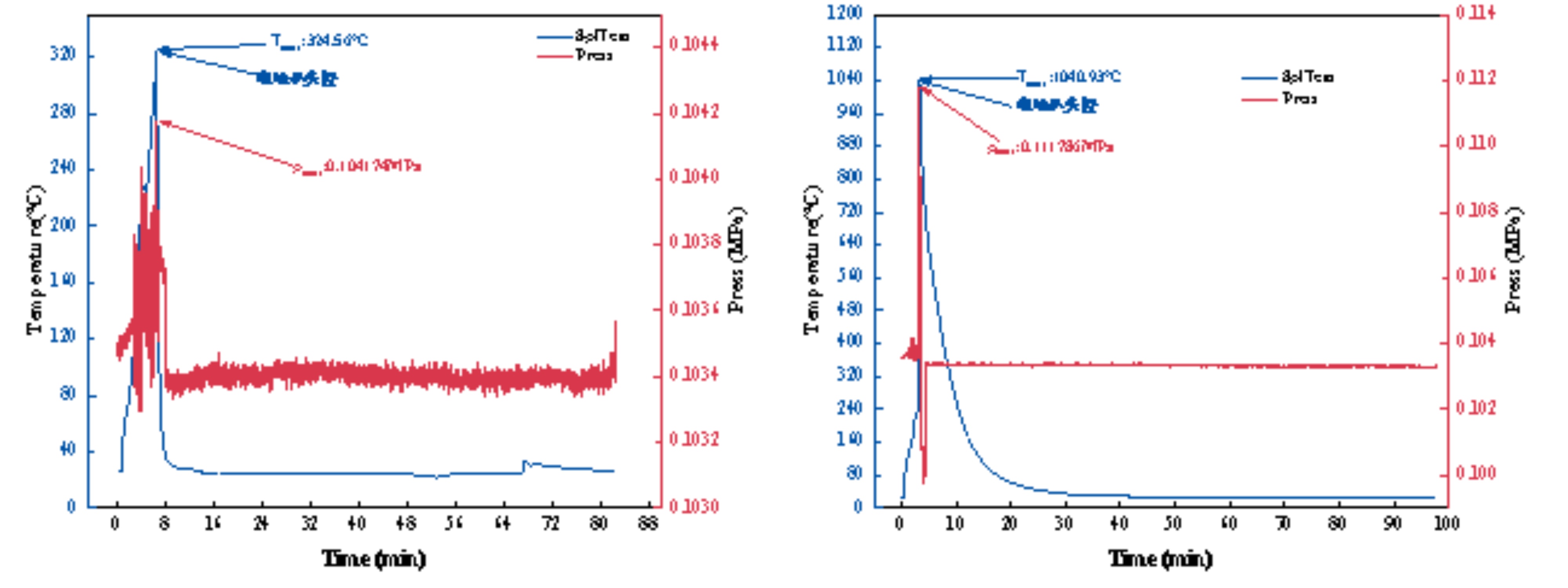 本次實驗BAC-800B大型電池絕熱量熱儀對1個5號堿性電池以及一個手機使用的NCM三元鋰電池進行測試,利用加熱片觸發(fā)電池熱失控。在實驗過程中對電池溫度、周圍氣體溫度、壓力及視頻等方法對爆炸過程進行實時監(jiān)控,并在實驗結束后觀察防火磚損壞程度。