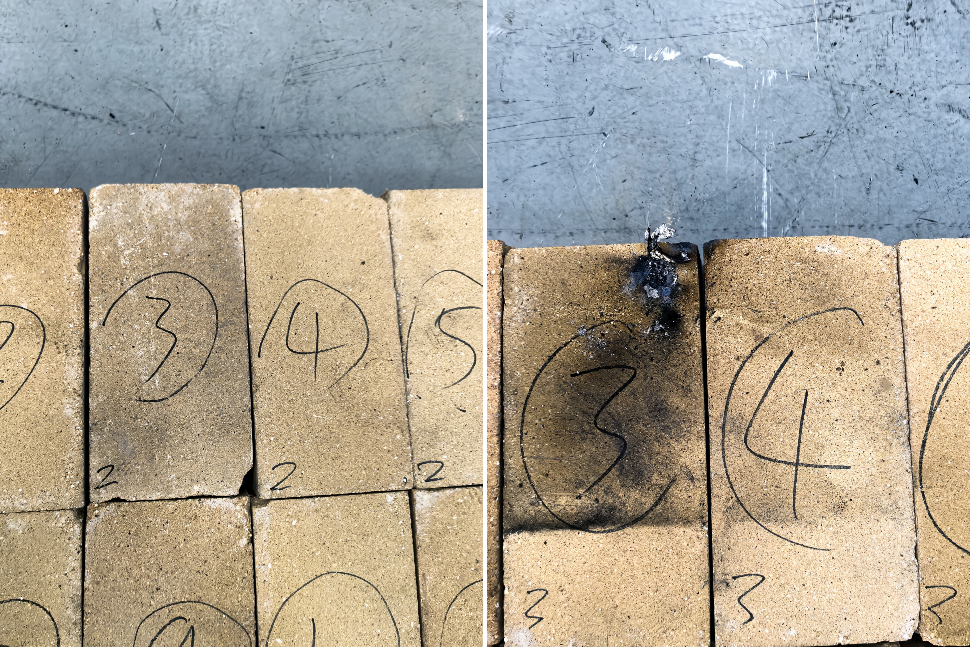 觀察實驗結果可以發(fā)現(xiàn),無論是手機電池還是堿性電池,其熱失控的劇烈程度均不足以破壞防火磚的整體結構,假如要探尋防火磚的安全下限或許需要更大容量或更高能量密度的鋰電池進行測試。