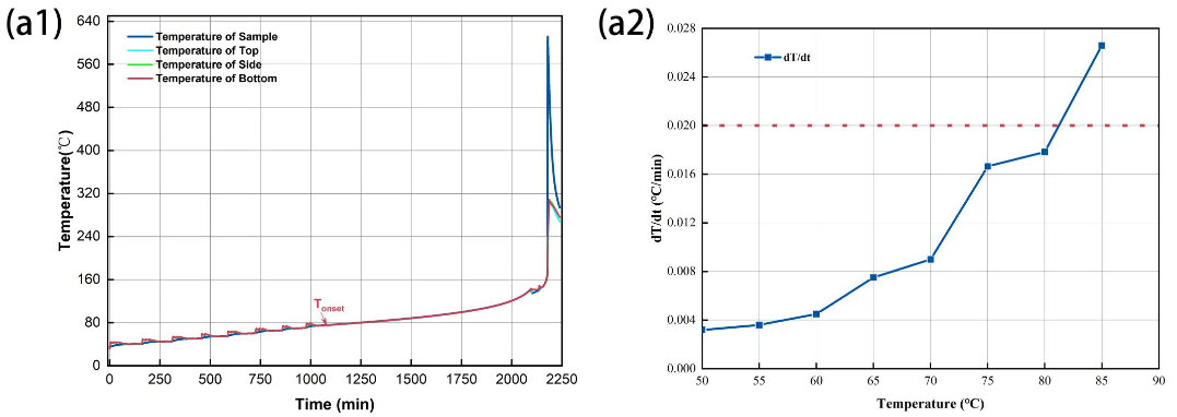 圖1 (a)BAC-420A大型電池絕熱量熱儀與(b)電池絕熱熱失控典型數(shù)據(jù)