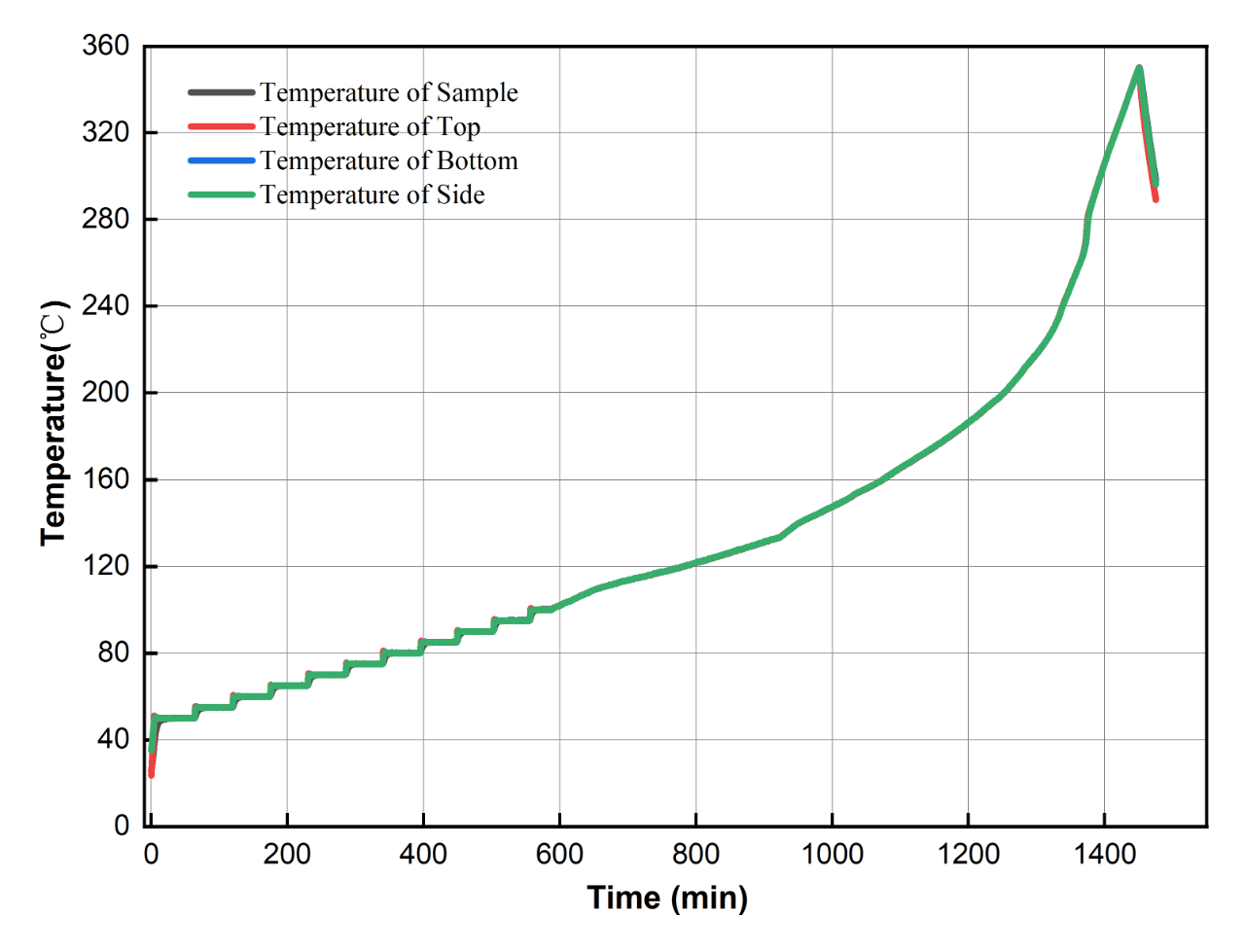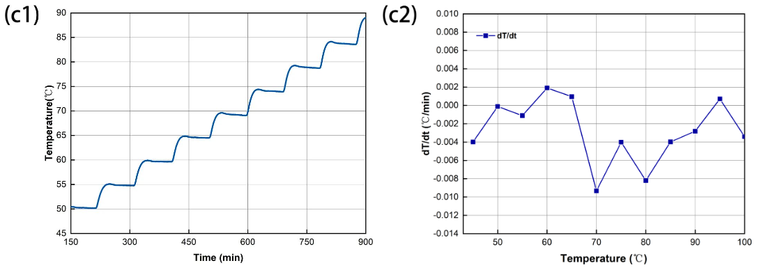 2) 臺階升溫步長控制在25℃及以下,增加恒溫臺階個數(shù)有利于提高校準(zhǔn)精度;
