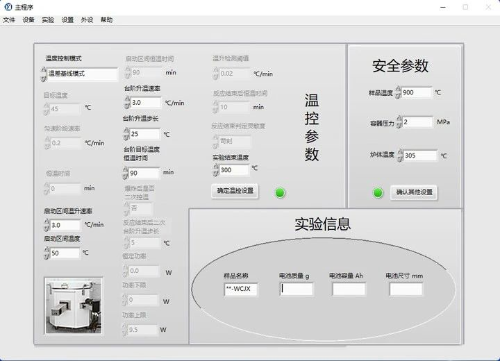 為了確保鋰離子電池的安全使用,需要獲取電池?zé)崾Э靥卣鲄?shù)作為電池?zé)峁芾硐到y(tǒng)的設(shè)計輸入,實(shí)現(xiàn)對電池?zé)崾Э氐念A(yù)防與早期預(yù)警。目前,行業(yè)內(nèi)對鋰電池?zé)崾Э氐臏y試主要依托于電池絕熱量熱儀(ARC)。該儀器能夠測定電池自放熱絕熱溫升曲線,并得到電池自放熱起始溫度(Tonset)、熱失控起始溫度(TTR)、最高溫度(Tmax)、泄壓溫度(TV)、最大溫升速率((dT/dt)max)和最大壓升速率((dP/dt)max)等特征參數(shù)。鋰電池?zé)崾Э亟^熱量熱測試方法目前尚未形成統(tǒng)一的技術(shù)標(biāo)準(zhǔn)或規(guī)范,國內(nèi)外各儀器廠商推薦的測試流程大致相同,但實(shí)驗(yàn)具體執(zhí)行過程中的樣品準(zhǔn)備、參數(shù)選取和操作規(guī)范性等因素均會對測試結(jié)果造成一定影響。本文以杭州仰儀科技有限公司的BAC-420A大型電池絕熱量熱儀為例,從電池?zé)崾Э貙?shí)驗(yàn)的主要操作流程入手,簡要說明各個步驟的操作要點(diǎn)和合格性判定方法,保障用戶最終獲取有效的實(shí)驗(yàn)數(shù)據(jù)。